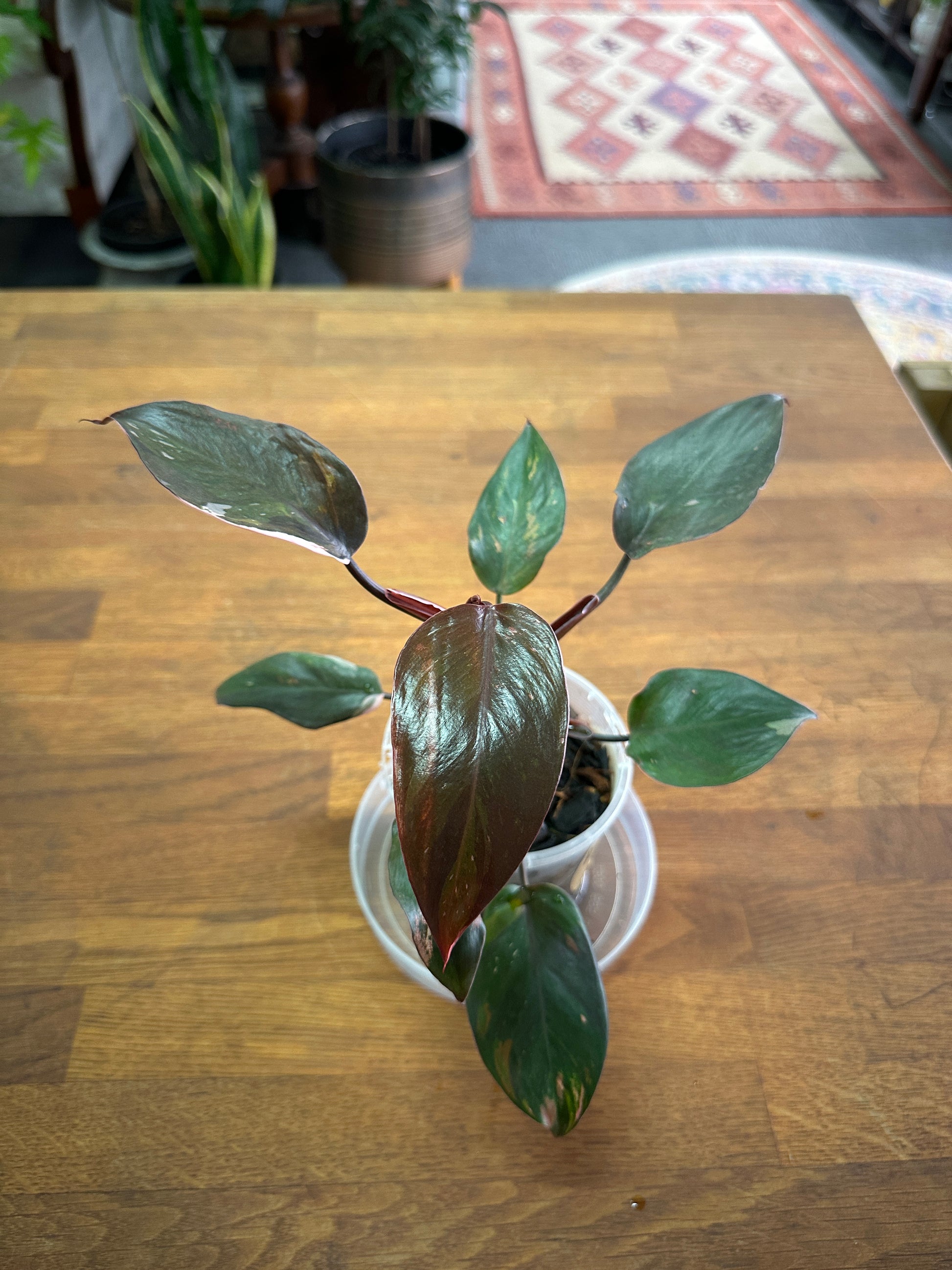 Rare Philodendron hybrid with creamy white, mint, and pink variegation